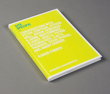 Gestaltungsvorschlag für „Site Specific”, ein Forschungsarbeit über Ort und Ortsbezug in der Architektur, herausgegeben von Karen Forbes, Edinburgh. Selbstedition.