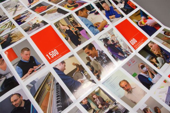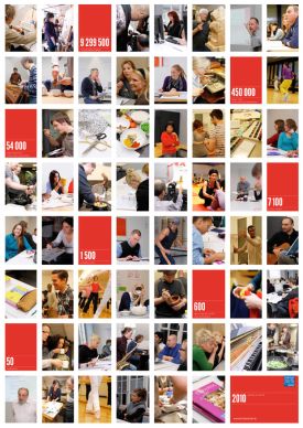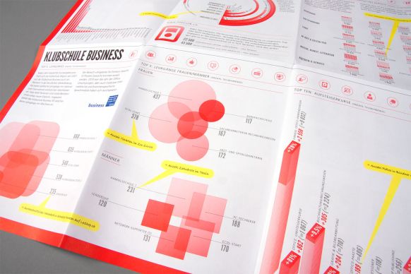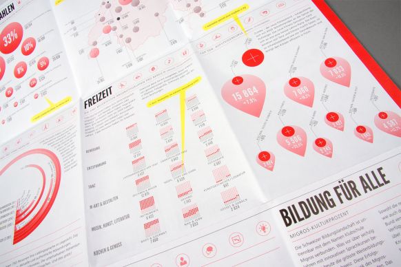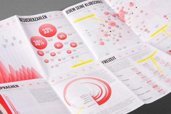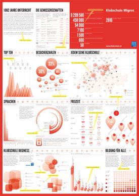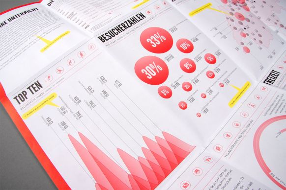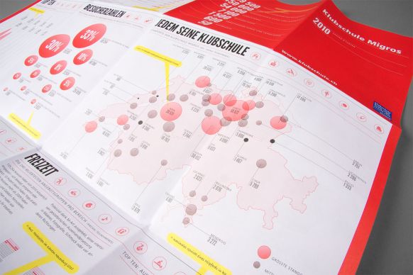 Annual report designed as a poster using infographics for Migros Klubschule, the largest further education institute of Switzerland.