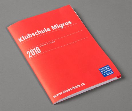 Jahresberichts der Migros Klubschule, gestaltet als Plakat mit Verwendung von Infografiken. Migros Klubschule ist die grösste Weiterbildungseinrichtung der Schweiz.