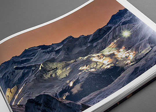 Image editing and book design “Helvetia by Night” published by NZZ Libro, Zurich. 100 photographs of urban and alpine Switzerland taken between dusk and dawn by the swiss photographer Alessandro Della Bella. Printed with high-pigmented inks. The protective book cover folds out to become a panorama poster.