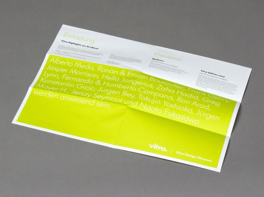 Gestaltung der Einladung für VIP-Gäste zum alljährlichen Vitra Campus-Event, welches während der Art|Basel stattfindet.